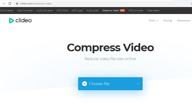 Tidak hanya offline anda bisa juga mengecilkan ukuran video secara online. Salah satu website yang menydiakan fasilitas untuk ini adalah Clideo. Dari segi tampilan website ini sangat mudah dioprasikan, Silahkan ikuti langkah berikut :