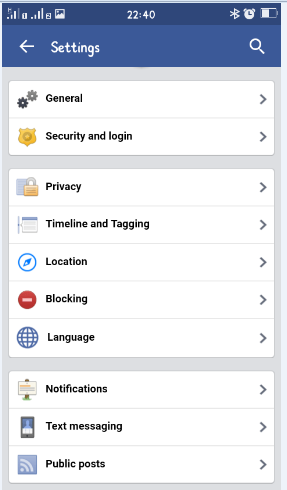 1. Klik App Setting pada aplikasi Facebook di handphone anda