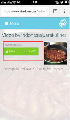 - setelah terbuka pilihlah icon instagram, dan paste URL video tadi pada box URL yang sudah di sediakan klik Dredown dan file videopun sudah siap di dowload. Silahkan lihat gambar untuk langkah yang lebih jelas.