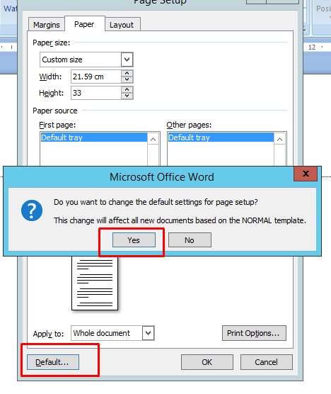 4. Untuk menjadikannya ukuran kertas otomatis saat anda membuka microsoft office Word