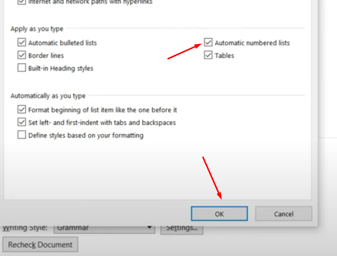 - Untuk mematikan nomor otomatis, langsung saja hilangkan centang pada ” automatic numberred list ” dan jika ingin mengaktifkannya kembali maka berilah tanda centang pada automatic numberred list. Jika sudah langsung saja klik ” ok “